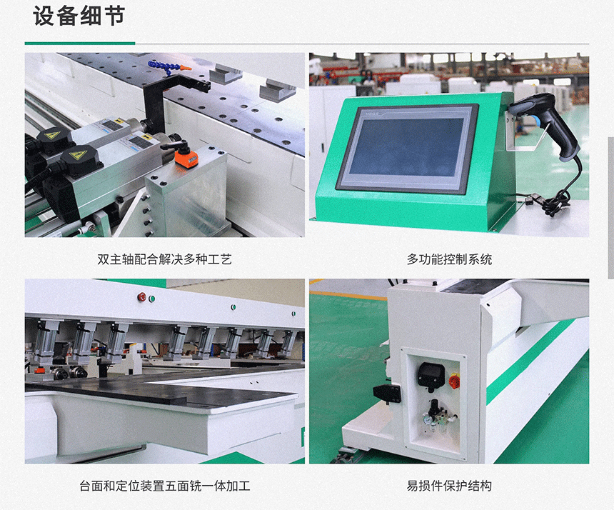 主要對板件進行側面鉆孔,銑槽加工,支持掃碼和激光感應兩種模式,加工效速度快,精度高,操作簡單。