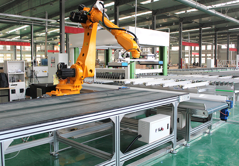 六面鉆、動力輸送輥臺、封邊機皮帶連線、平移皮帶機、平移動力輥臺、多層智能緩存倉,分揀機器人, 控制系統等組成,通過總系統實現智能化、自動化生產。